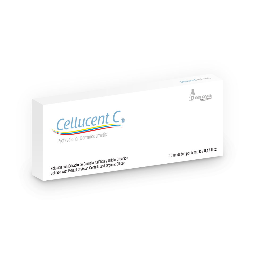 CELLUCENT C es una solución reafirmante que se usa para eliminar la celulítis en glúteos, muslos y piernas. Estas ampollas reafirman y tonifican los tejidos. Es un tratamiento de mesoterapia corporal compuesto por vitamina C, silicio orgánico y centella asiática.